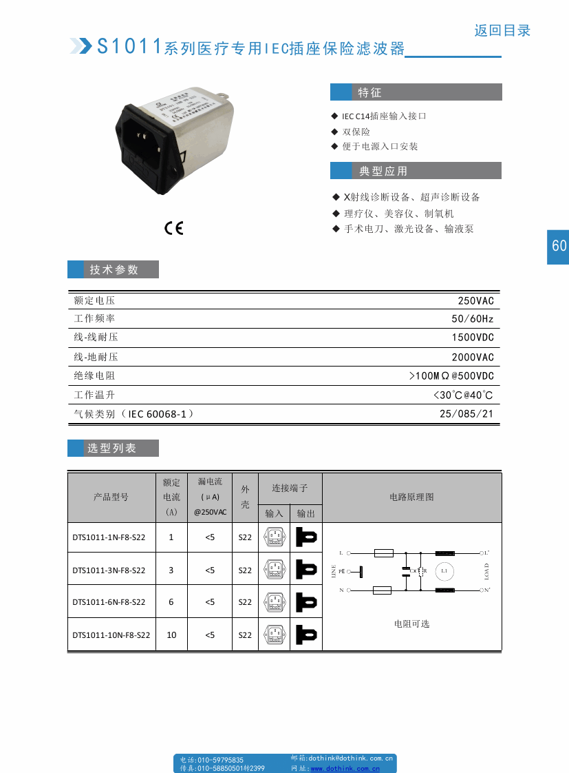 DTS1011系列醫(yī)療保險插座濾波器