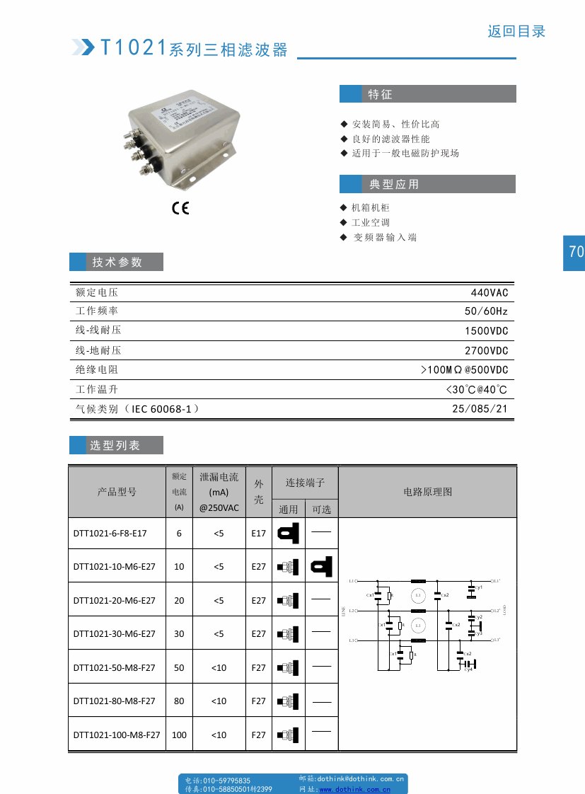 DTT1021系列三相三線變頻器輸入端濾波器