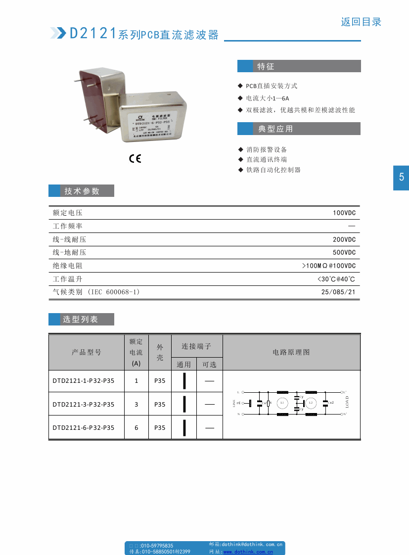DTD2121系列直流插針濾波器